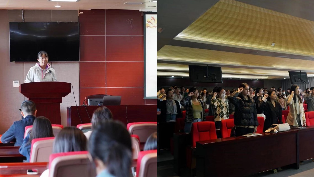 新生党员代表博士生任同宣读了《报效祖国 青年有责》——致时时彩平台-在线时时彩平台推荐 全体同学的倡议书,倡议书强调青年党员应该立大志、明大德、成大才、担大任,把论文写在祖国大地上。随后,在新生党员代表硕士生李沅洁领誓下,全体党员重温入党誓词,立志永葆党性、矢志担当。