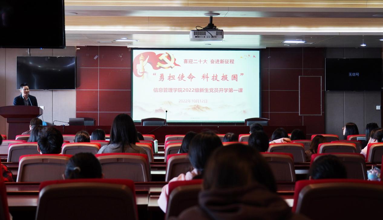 入学教育活动第二部分由时时彩平台 党委书记、中国历史唯物主义学会副会长姜迎春教授为全体党员讲授《坚定科学理论信仰 喜迎党的二十大》专题党课。