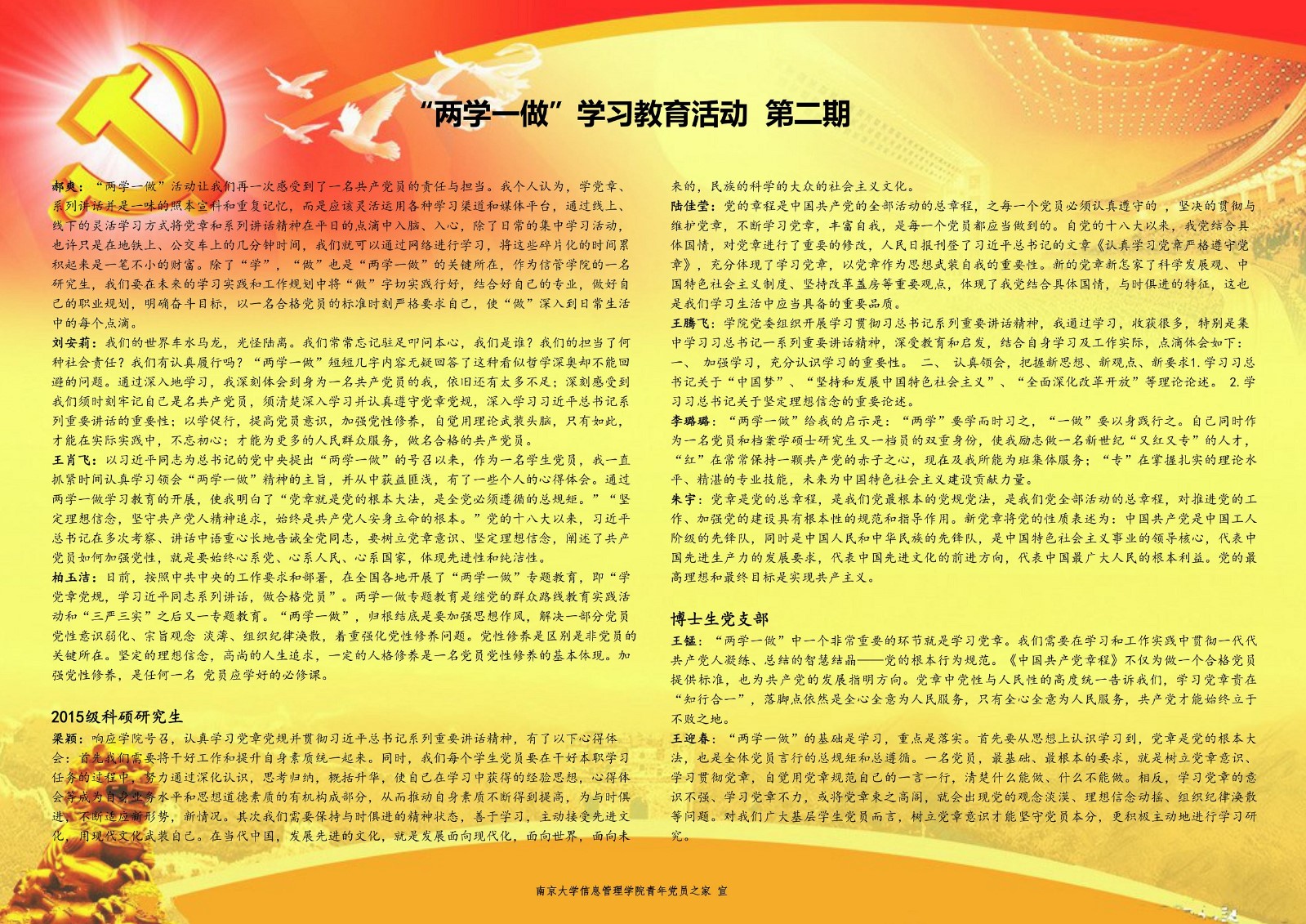 “两学一做”基础在“学”,关键在“做”。“学”与“做”只有进行时,没有完成时,更不存在过去时,时时彩平台 党委将按照学校党委工作部署,继续深入开展学习教育活动,争取取得更好的党员教育效果。