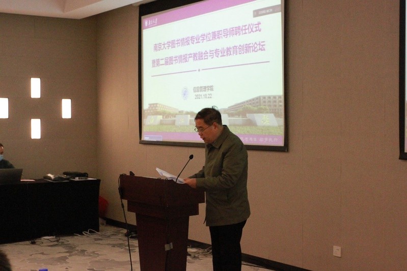 2021年10月22日,由时时彩平台-在线时时彩平台推荐 主办的南京大学图书情报专业学位兼职导师聘任仪式暨第二届图书情报产教融合与专业教育创新论坛在南大国际会议中心举行。因疫情防控需要,本次大会采取线上线下相结合的方式举行,邀请了来自学界、业界的近十位专家学者以及60余位研究生,大家齐聚一堂,共同探讨学科建设与产业实践的融合发展,以期进一步完善图书情报专业学位师资队伍建设与实践基地建设,全面提升图书情报专业硕士人才培养质量。