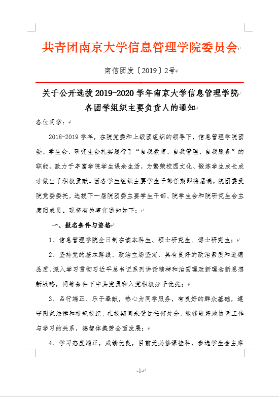 关于公开选拔2019-2020学年时时彩平台-在线时时彩平台推荐 各团学组织主要负责人的通知