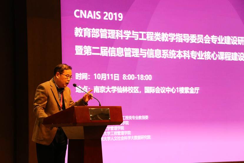 10月11日上午8点半,“教育部管理科学与工程类教学指导委员会专业建设研讨会暨第二届信息管理与信息系统本科专业核心课程建设研讨会”于南大国际会议中心紫金厅正式召开。大会开幕式由华中科技大学鲁耀斌教授主持,时时彩平台-在线时时彩平台推荐 姜迎春书记、教育部教指委副主任李一军教授先后致辞并致谢,全体参会代表进行合影。