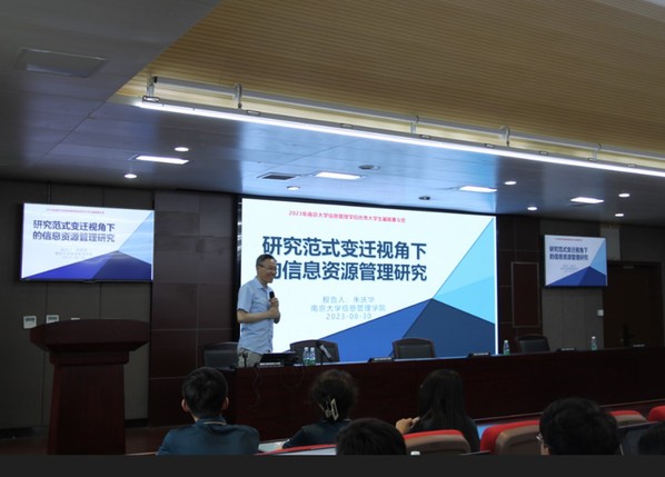 在知名学者讲座上,朱庆华教授作题为《研究范式变迁视角下的信息资源管理研究》的讲座,郑建明教授作题为《图书馆学情报学的学科认知与学科生长》的讲座,分别从学科发展的角度向营员们分享自己的研究进展与心得体会。杨海平教授以《南京大学出版专业介绍及出版学科前沿研究方向》为题、博士后宋宁远以《从数字到语义——学术出版的发展趋势》为题,分别从出版专业的发展、学科前沿趋势等方面与营员们深入交流。