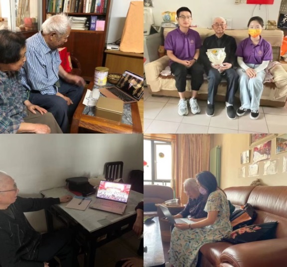 5月20日,南京大学喜迎120周年华诞。当天上午,在在线时时彩平台推荐 党委、关工委精心组织安排下,18名青年学子分赴8位荣休教师家中,看望拜访老教师,送上鲜花和校庆慰问品,陪同收看南京大学庆祝建校120周年大会,聆听老教师们的祝福与寄语,在师生亲切的对话交流中共同为母校庆生。