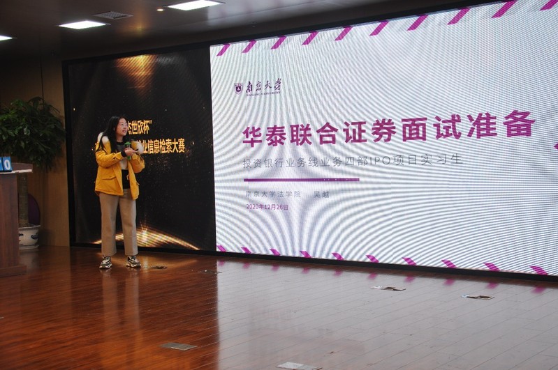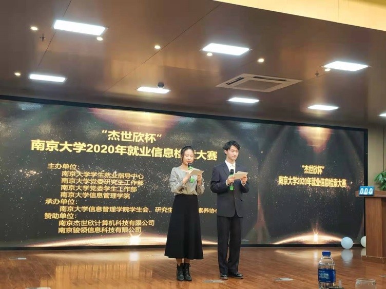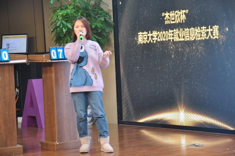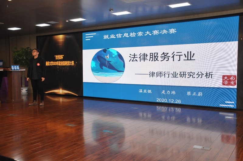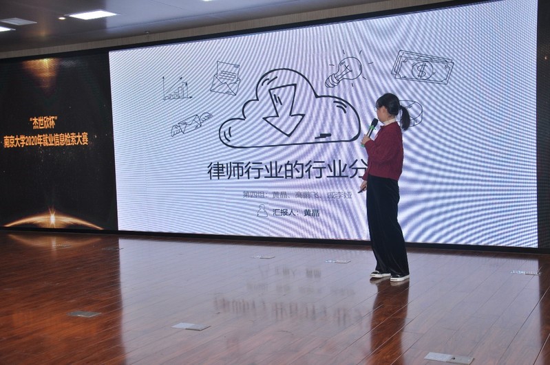 12月26日,“杰世欣杯”南京大学2020年就业信息检索大赛决赛在仙林校区众创空间路演大厅拉开帷幕。从初赛中脱颖而出的15名优秀选手,通过团队赛、个人赛两个环节角逐最后的奖项。比赛聚焦大学生职业生涯规划、就业政策、就业环境、求职技巧等信息素养能力提升,着力考察参赛选手的就业信息检索、组织与分析能力,展现了南大青年学子的理想追求和实践能力。校党委学生工作部王曦曦老师,校学生就业指导中心操琳琳老师、时时彩平台时时彩平台 潘雪莲老师和刘千里老师担任比赛评委。