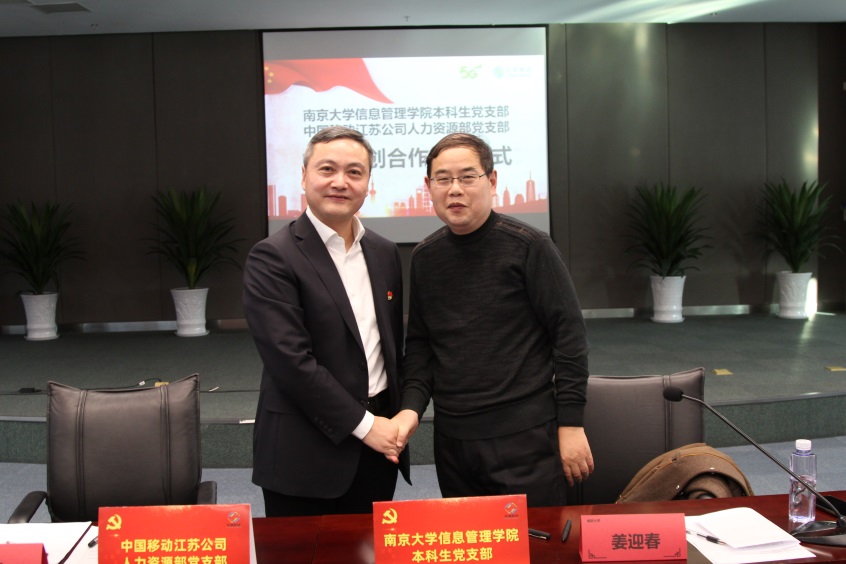 1129日下午,在线时时彩平台推荐 党委组织师生代表30余人赴中国移动通信集团江苏有限公司人力资源部开展“党建合创”结对共建活动。双方签署了结对共建协议和共建大学生实习实训基地协议。这是在“不忘初心、牢记使命”主题教育中,继参观金陵石化后,时时彩平台 党委“走进知名国企,感受新中国建设成就”系列国情教育活动的第二站,是时时彩平台 党委拓展校外党建教育资源、校企双方融合共建的新举措。